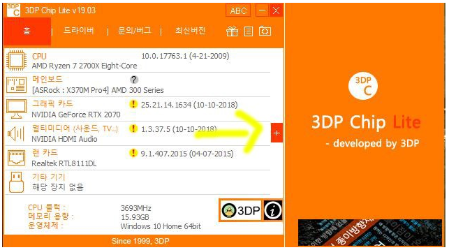 개선 기능 탭이 없으신 분들 3DP Chip 설치