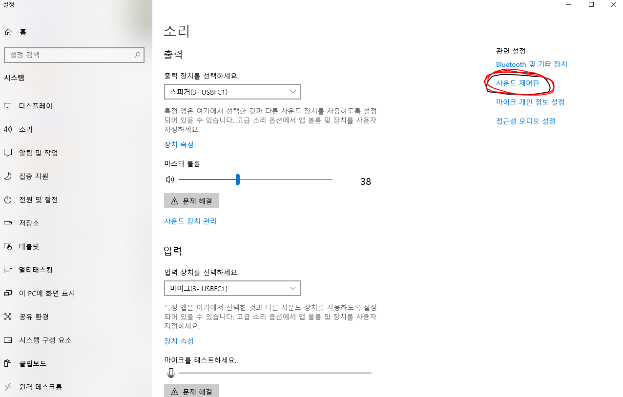 만약 이렇게 뜨시는 분들은 우측에 '사운드 제어판'을 클릭해 주시면 됩니다.